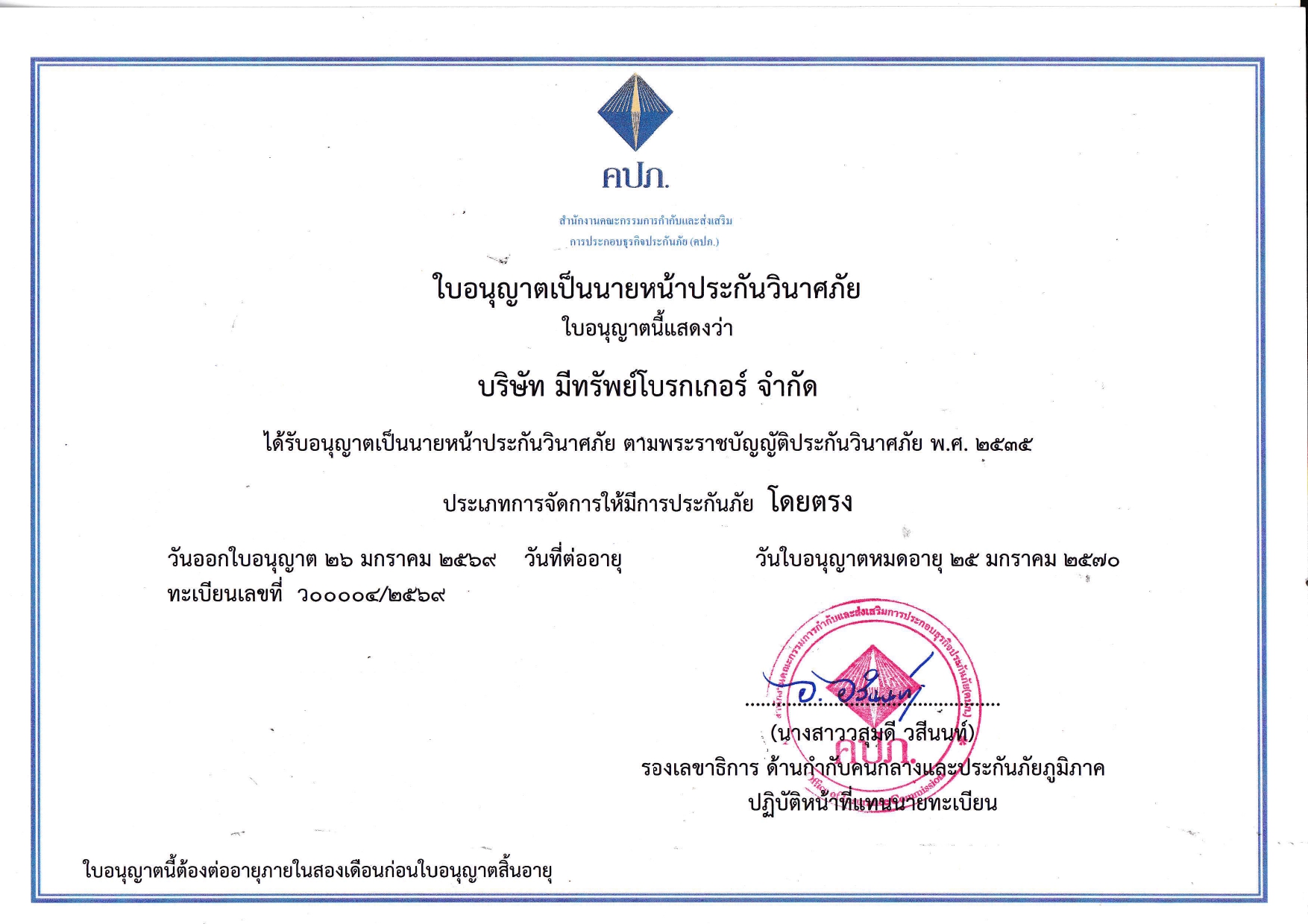 ใบอนุญาตนายหน้าประกันวินาศภัย