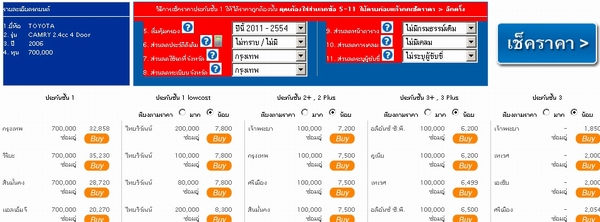 - เลือก1.ประกันที่ต้องการ2.กด buy หรือ กรณีประกันชั้น1 ใส่ส่วนลดข้อ5-11 แล้วกดเช็คราคา>